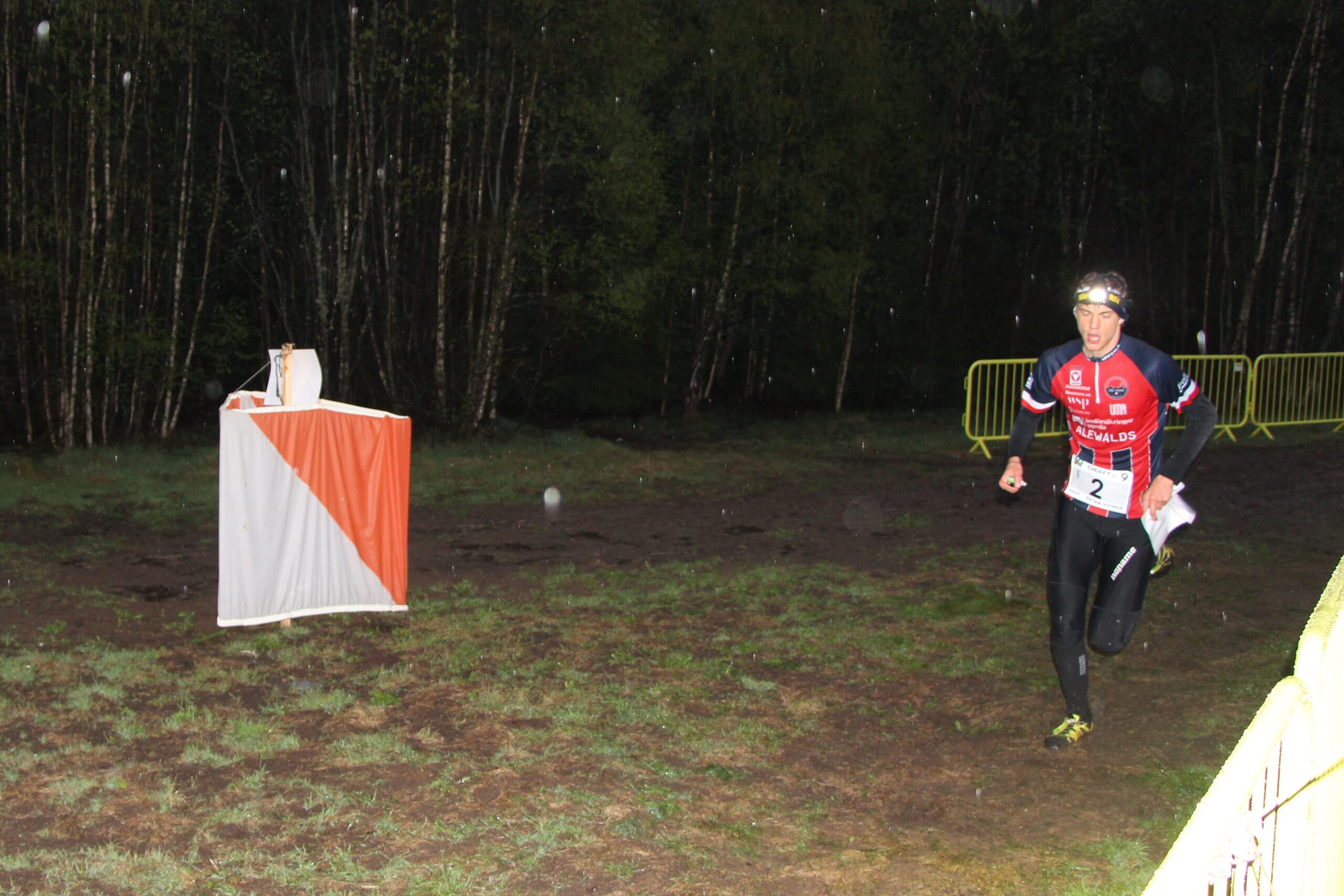Nico nacherzählt: „Meine erste 10Mila. Gespannt was mich erwarten würde, aber top motiviert reiste ich ins südschwedische Glimakra. Einzige Anweisung des Bundesheertrainers Martin Binder: saug einfach das ganze auf, genieß‘ es – Jawohl, aufsaugen! Befehl ist Befehl. In diesem Fall ein besonders leicht zu befolgender Befehl, denn aufzusaugen gab es einiges. Vor allem Wasser. Wasser von oben, in Form von der ganzen Nacht andauernden Schauern. Wasser von unten, in Form von tiefen Sümpfen, welche vor allem gegen Ende der Bahn unvermeidlich waren. Wasser von der Seite, in Form von einigen Getränkeposten, welche trotz perfekten OL-Wetters auf meiner 12km langen Strecke absolut nötig waren. Und ich braver Rekrut – falsch- Gefreiter habe all das aufgesaugt. Mehr oder weniger freiwillig. Doch neben Wasser in jeder Form gab es einiges mehr aufzusaugen. Zum Beispiel den spektakulären Start der über 300 Teams. Oder die immense Arena mit riesiger Leinwand uns allem was dazugehört. Kurz gesagt eine super Stimmung, ein unglaubliches Feeling. Ein Erlebnis, das von einem sehr zufriedenstellenden Lauf gekrönt wurde. Aber alles von vorne: Nachdem ich um 20:30Uhr das Startspektakel live miterleben durfte, ging es schnellstmöglich zurück ins Vereinsquartier von OK Pan Kristianstad, meinem schwedischen Verein, für den ich die 8 Strecke im 2. Team absolvieren sollte. Das Quartier befand sich einen Ort weiter in Högsma. Dort verfolgte ich noch die sensationellen Läufe unserer beiden Startläufer Matthias Gröll für OK Pan 1 und Franz Glaner für Team 2 über die Live-Übertragung, ehe ich mich niederlegte. Gegen 3 Uhr riss mich mein Wecker aus dem bis dahin nicht wirklich vorhandenen Schlaf. Nach einem kleinen Frühstück ließ ich mich von Fahrer Per in die Arena shuttlen. Geplante Übergabe für das schnellste Team war um 4:24, ich durfte mit knapp 2 Stunden Verspätung in meine Strecke gehen, welche eigentlich als Dämmerungs- / Tagstrecke ausgeschrieben war. Das war sie aber aufgrund des schlechten Wetters um 6:24 immer noch nicht, weshalb ich mit Lampe ausgestattet ins Rennen ging. Fokussiert arbeitete ich die über 30 Posten der Strecke ab. Entgegen meiner Vorstellung dieser Staffel war ich großteils komplett alleine unterwegs. Trotzdem gelang es mir 10 Plätze gutzumachen ehe ich den vorletzten Läufer meines Teams auf seine Strecke schickte. Schlussendlich landete OK Pan Kristianstad 2 auf dem zufriedenstellenden 69. Rang.“