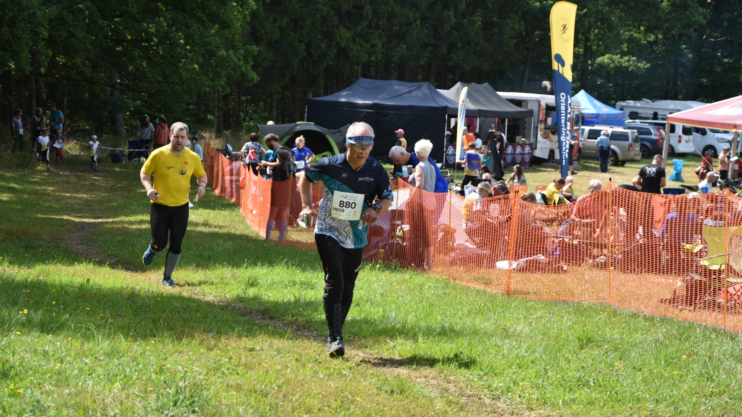 Der fünfte und letzte Tag im Wald ist wieder ein besonderer. Auf der Karte Medvědí kemp [Bärenlager] gehen die rund 1.600 Läuferinnen & Läufer aus über 25 Nationen auf eine abschließende Pirsch. Gejagt werden die Führenden in der Gesamtwertung nach 4 Tagen. Darunter sind auch Babsi [D50-] und Ernst [H80-]. Beide werden von der Jagdgesellschafft nicht erwischt. Beide gewinnen ihre Kategorie und müssen Gott sei Dank nicht ewig auf die Siegerehrung warten Da vergeht in Böhmen kein Viertel.