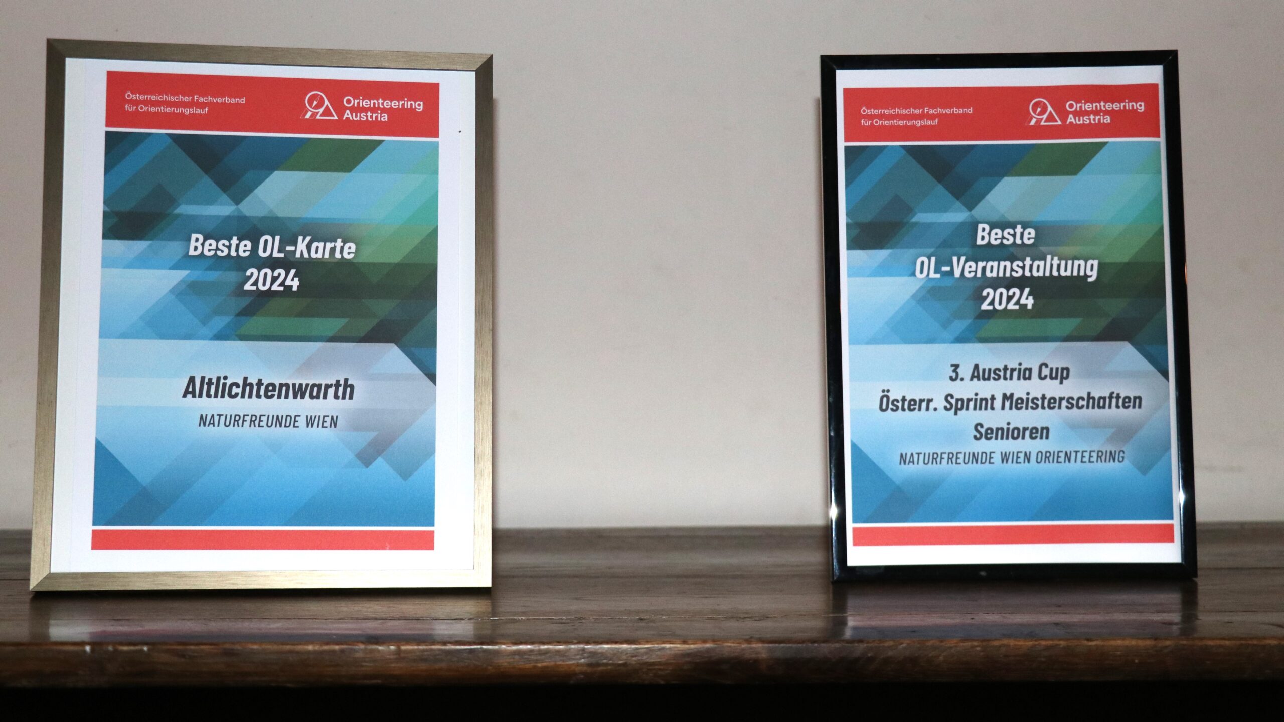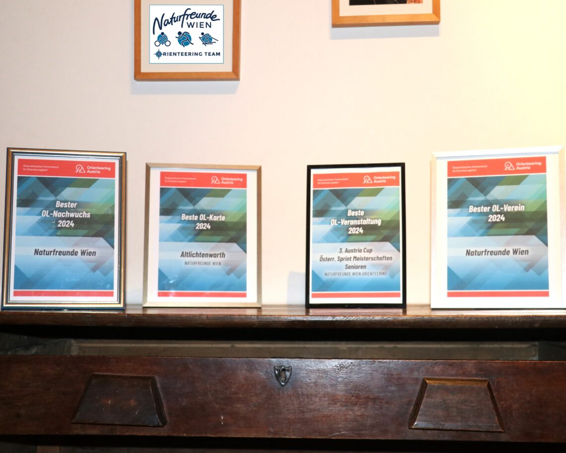 Wir wurden geehrt: Laut Ernst, der doch schon einige Jahre dabei ist, hat es das noch nicht gegeben. Das Naturfreunde Wien – Orienteering Team wurde auch für „die beste OL-Veranstaltung 2024“ und die „beste OL-Karte 2024“ (von Nico gezeichnet) prämiert. Beide Auszeichnungen im selben Jahr zu bekommen, ist eine Premiere. Beide Auszeichnungen beziehen sich auf den Austria Cup-Sprint in Altlichtenwarth im Mai. Und um diesen Erfolg noch beeindruckender zu machen, ging in beiden Kategorien der 2. Platz mit der österreichischen Meisterschaft im K.O.-Sprint in Poysdorf im Mai auch an unseren Verein.
