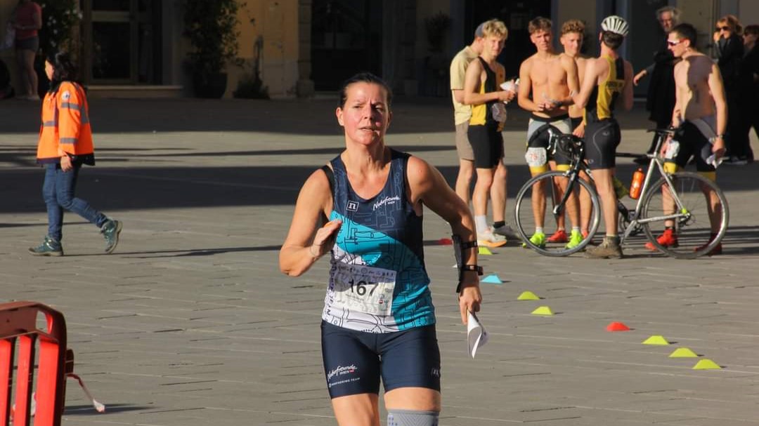 Das Wettkampfzentrum liegt im naturbelassenen Gastgarten einer Osteria. Herrlich. Der Weg zum Start der Mitteldistanz in Travalle ist ganz schön lang. Wie lange genau, darüber gehen die Meinungen auseinander. Laut Bulletin sind es 2 Kilometer. Aber das ist nur eine Meinung. Laut GPS sind es über 50% mehr. Keine Diskussionen gibt es über folgenden Umstand: 15 Minuten Laufzeit ist zu kurz. In manchen Kategorien wurde im steinigen Zypressenwald mit vielen Mountainbike-Trails und einigen alten Gräbern aus der Etruskerzeit vom Bahnleger offenbar statt der Mitteldistanz ein Sprint geplant. Spannend ist auch, dass das Ziel laut Karte im „olivgrünen“ liegt. Aber irgendwie stimmt das sogar: auf den letzten Metern stehen alte Oliven-Bäume Spalier. Wir lieben einen Zieleinlauf wie diesen.