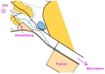 Posten 100 und Zieleinlauf: Nach deiner letzten Strecke und, nur dann, markierst du am Posten 100 und läufst die markierte Strecke in’s Ziel (250m). Nicht auf der Ziellinie stehen bleiben, sondern weitergehen bis zur Kontrollkartenabnahme. Nach dem Ziel nicht mehr überholen!