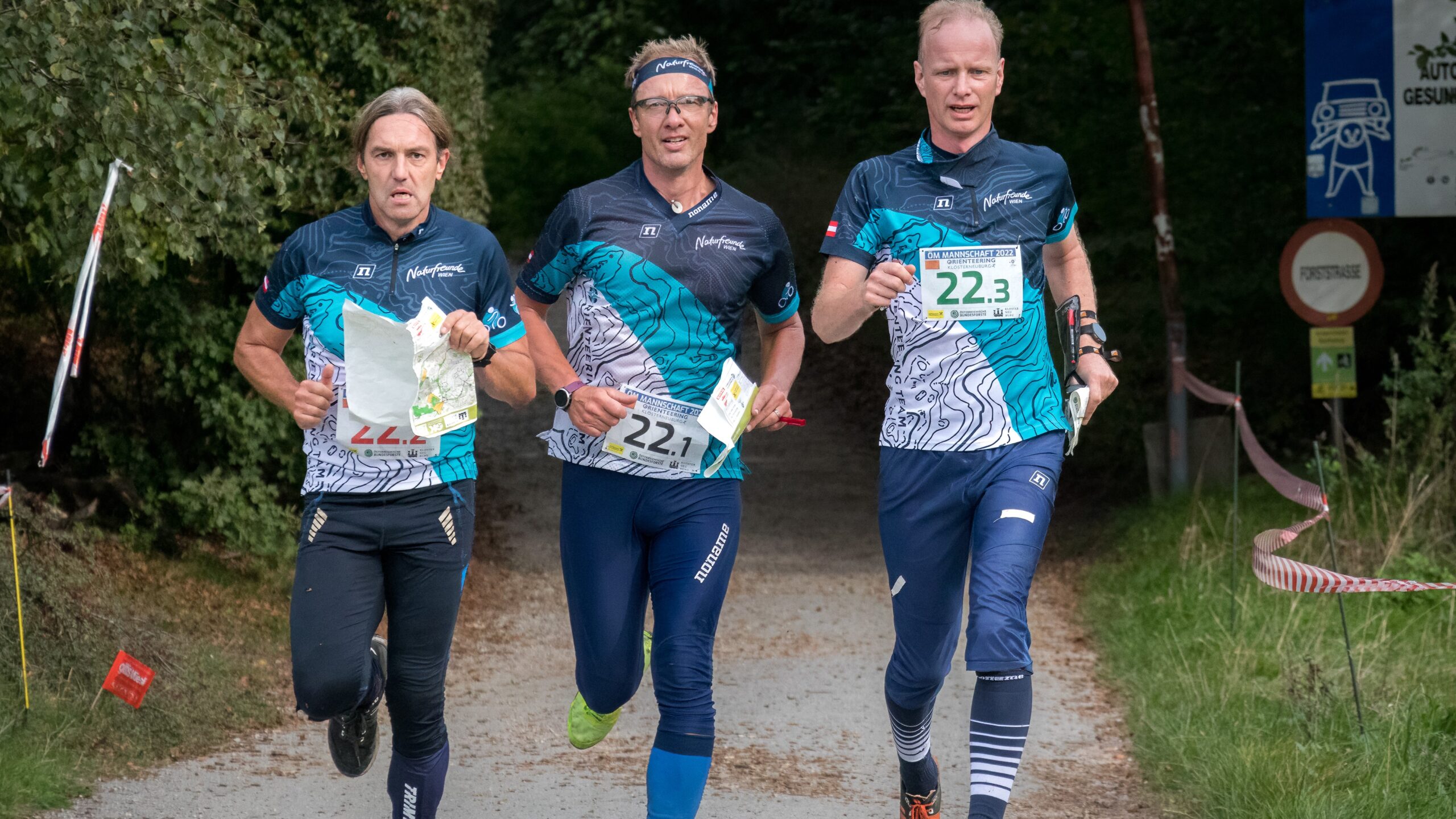 Dramatisch wie selten zuvor verläuft der Kampf um die Medaillen in der Herren-Elite. Je länger dieses Rennen dauert, desto mehr spitzt sich die Situation zu. Vier Teams setzen sich vom Rest des Feldes ab und kämpfen um drei Medaillen. Nicolas, Anton & Flo [H19-] verpatzen gleich zu Beginn eine Chip-Übergabe, suchen mehr als 2 Minuten lang keine Posten, sondern sich selbst sowie gegenseitig. Die Aufwandsentschädigung für die folgende, intensive Aufholjagd über 14,5 Kilometer und 725 Höhenmetern ist schließlich aus Bronze. Nach 80 Minuten fehlen nur 37 Sekunden auf Gold, nur 14 auf Silber und der Vorsprung auf Blech beträgt auch nur 23 Sekunden. Bei einem Mannschafts-Wettkampf kann immer etwas schiefgehen.