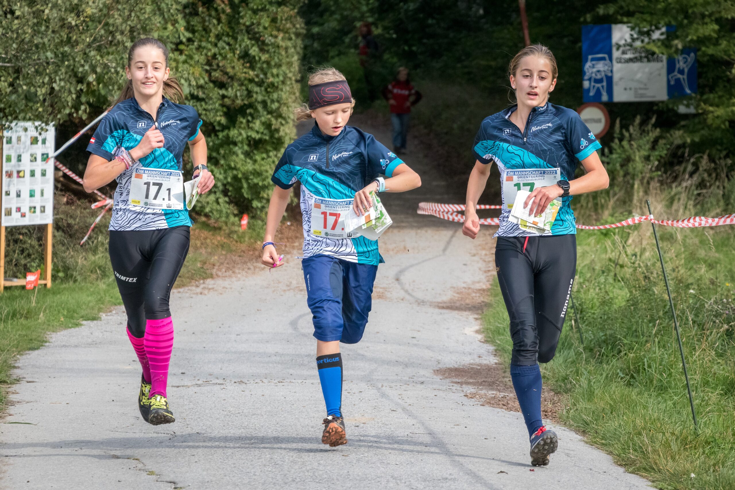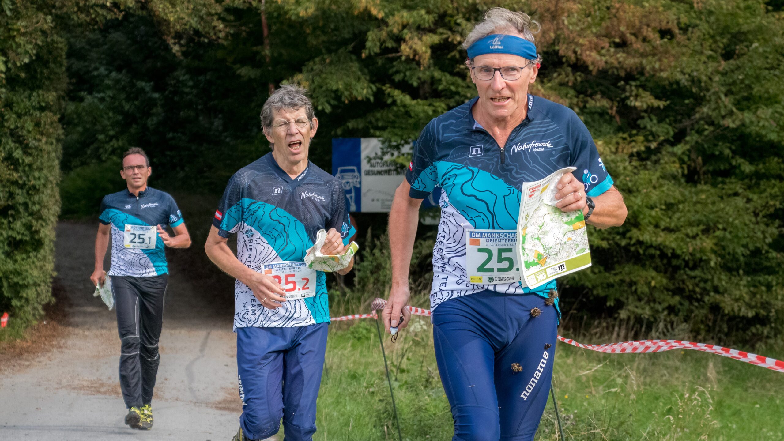 Einen Sieg ohne ÖM-Titel gibt es für Vera, Birgit & Manuela [D55-]. In ihrer Kategorie kommt keine Meisterschaftswertung zustande. Nicht in die Wertung kommen Hannes, Samuel & Johannes [H40-], die in dieser Kategorie außer Konkurrenz die drittbeste Zeit laufen. Silber gewinnen Lauri, James & Fabian [H-14] mit nur 46 Sekunden Rückstand auf Fun-OL-Nö.