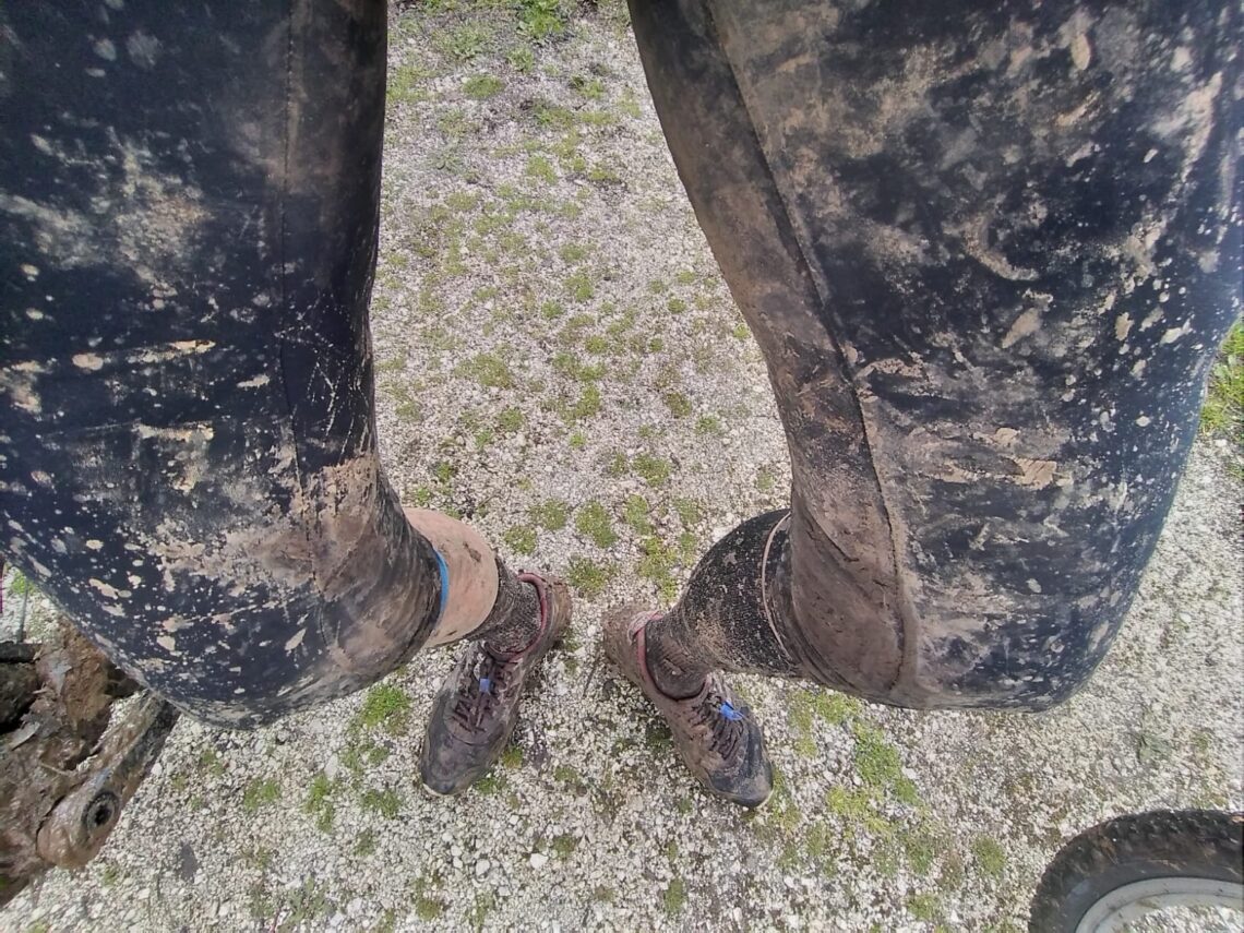 Von dieser Art der Schlammpackung ist eine schon zu viel. Es gab zwei davon. Nämlich beim Austria Cup-Wochenende im Mountainbike-Orienteering am 15. und 16. April 2023 in Ungarn. Mittel- und Langdistanz in den Wäldern zwischen Veszprem und dem Balaton wurden zu einer Schlammschlacht mit ungewissem Ausgang. Auch für das wasserfeste Naturfreunde Wien-Quartett Babsi, Christine, Thomas & Zoe.