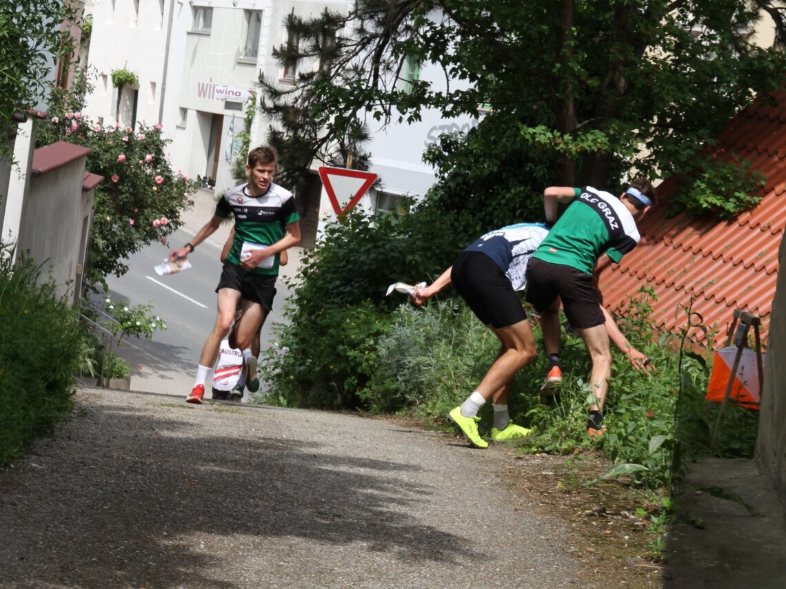 Viele Heats verliefen – wie auch viele Fotos zeigen – spannend und brachten während der durchschnittlich 6-8 Minuten Laufzeit viele Führungs- und Positionswechsel. Die sehr gute Bahnlegung lud manche zum Nachlaufen und viele zum Erkennen & Probieren eigener Routen ein. Start und Ziel lagen direkt im Wettkampfzentrum auf dem Sportplatz des SC Poysdorf, auch das sorgte für gute Stimmung. Vor allem bei den Elite-Finalläufen. Bei den Herren sprintete Jannis hinter Matthias Reiner [Naturfreunde Villach] zur Silbermedaille. Bei den Damen war das Naturfreunde Team nicht im Finale vertreten. Ylvi, Tina & Anika verpassten es knapp, liefen dann im B-Finale auf die Plätze 1,2 und 4.