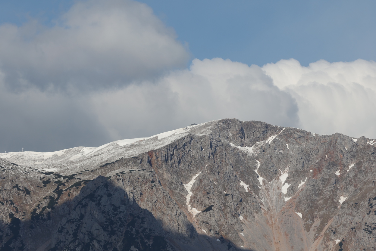 Die diesjährige Teilnahme am Schneebergtrail erfolgte auf Anfrage eines befreundeten Läufers. Dazu entschloss ich mich für die längere Strecke anzumelden, weil ich den Weg entlang der Schneeberg-Bahn als einen der wenigen Wege am höchsten Gipfel Niederösterreichs noch gar nicht kannte. Auf Grund der kurzfristigen Absage hieß es jedoch alleine anreisen. Diesmal schon mit dem Zug, da die Veranstalter es nach Jahren geschafft haben, den Start so zu legen, dass eine Anfahrt von Wien öffentlich möglich ist. Immerhin nahmen 30-40 Läufer das Angebot in Anspruch. Ein kurzer Schock, als nach Wiener Neustadt der Schneeberg seine ganze Schönheit mit Schneehaube ausstrahlte. Damit war nicht zu rechnen gewesen.