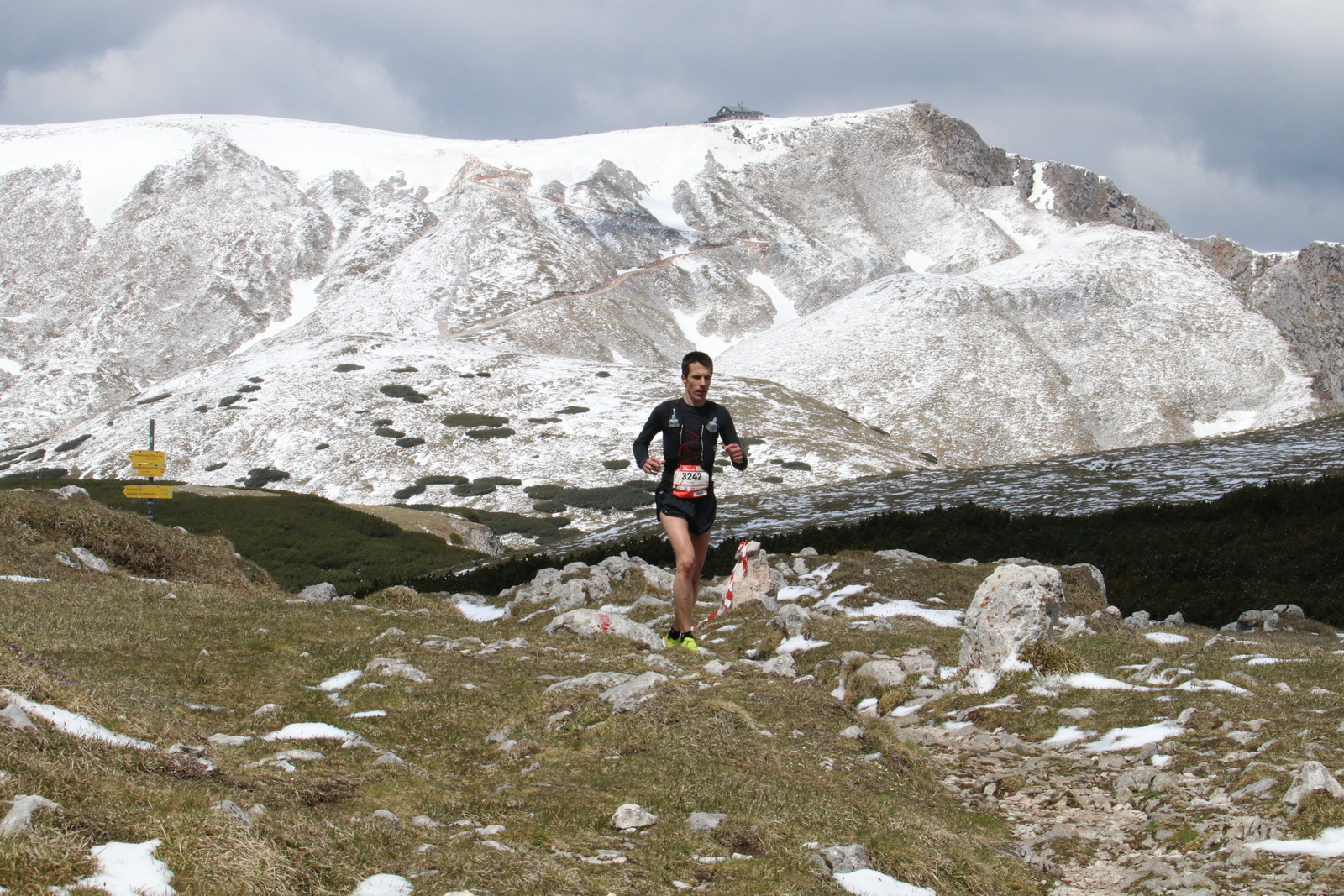 Zur Abwechslung gab es ideale Laufbedingungen bei ca. 12 Grad am Start und 4 Grad am Klosterwappen, nachdem ich auch in einem früheren Lauf schon bei Regen, Wind und Nebel den Berg überquert habe. Vom Start weg lief ich mein Tempo, verhalten, beim ersten Anstieg zusätzlich gebremst von der Kette an Teilnehmern am Single Trail. Nach den ersten 500 Höhenmetern lichteten sich die Reihen. Das Hochalmgebiet der Mamauwiese nach den schmalen dunklen Wegen über den Öhler ein Lichtblick. Wenngleich die Ansicht der sich aufbauenden Nordwand des Schneebergs schon Ehrfurcht einflößte. Am Anstieg zur Dürren Leithen meldeten die Oberschenkel zum ersten Mal: Müdigkeit. Die gab sich aber nach der Bergabstrecke und dem Adaptieren der Ausrüstung mit Windjacke und Handschuhen bei der Edelweiß-Hütte, denn am Aufstieg über den Fadensteig ging es richtig locker und ich überholte Läufer um Läufer.