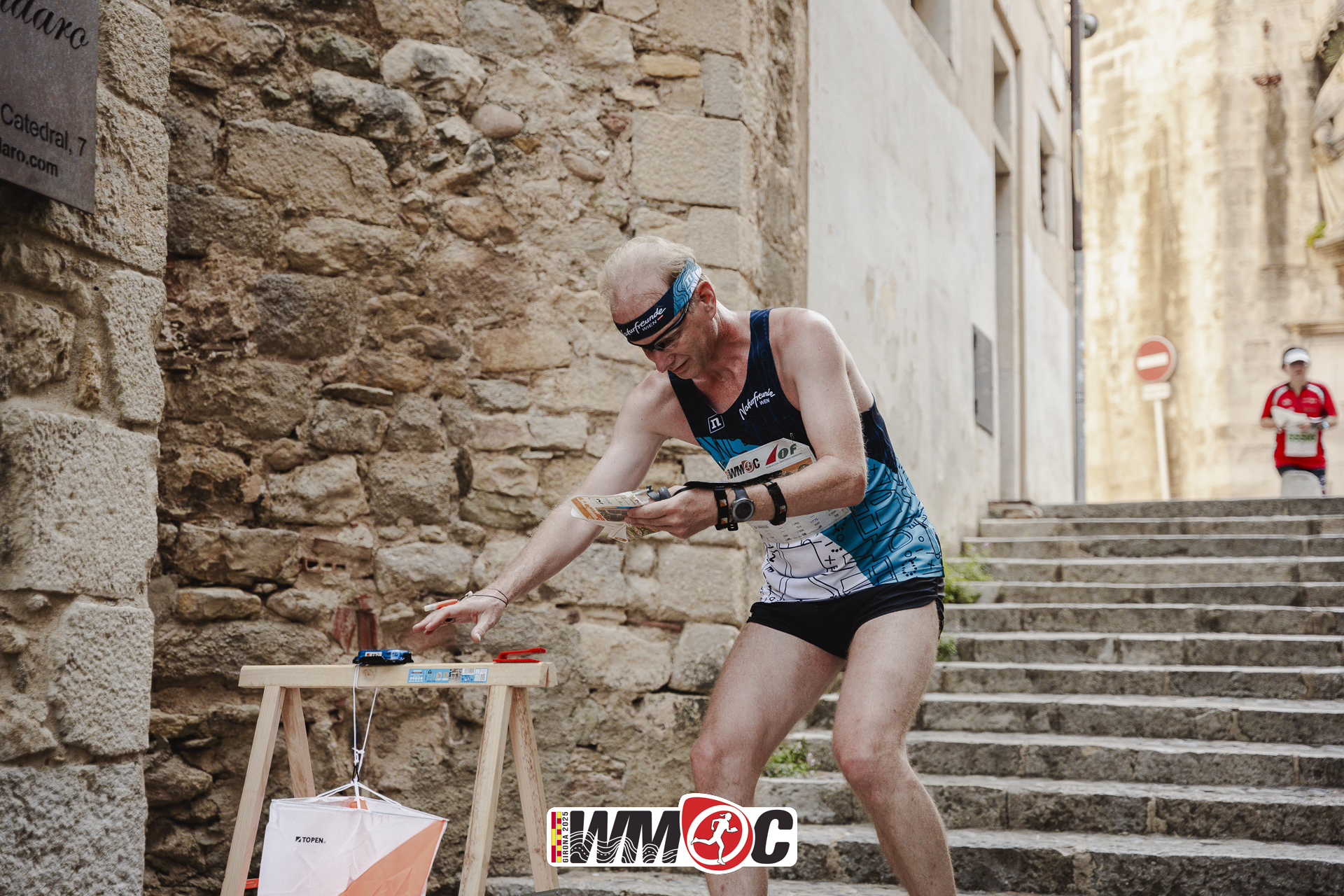 Samstag, kurz nach 9 Uhr früh in der Provinzhauptstadt Girona. Schon der Weg hinauf zum Start der Sprint-Qualifikation ist schweißtreibend. Einerseits hat es bereits 30 Grad, andrerseits geht es auf den, die Stadt überragenden Hügel Montjuic hinauf. Genauso, nämlich überragend, ist einerseits der Panoramablick über den nordöstlichen Teil von Katalonien, andrerseits die ersten Wettkampf-Minuten in den Ruinen der von Philipp IV von Spanien erbauten Festung. Danach geht es flott hinunter Richtung Stadtzentrum. Je näher man der Altstadt kommt, desto größer wird das Gewusel, in das sich jetzt auch die Läuferinnen und Läufer, die ihre Qualifikation von Start 2, Start 3 und Start 4 begonnen haben, einmischen.