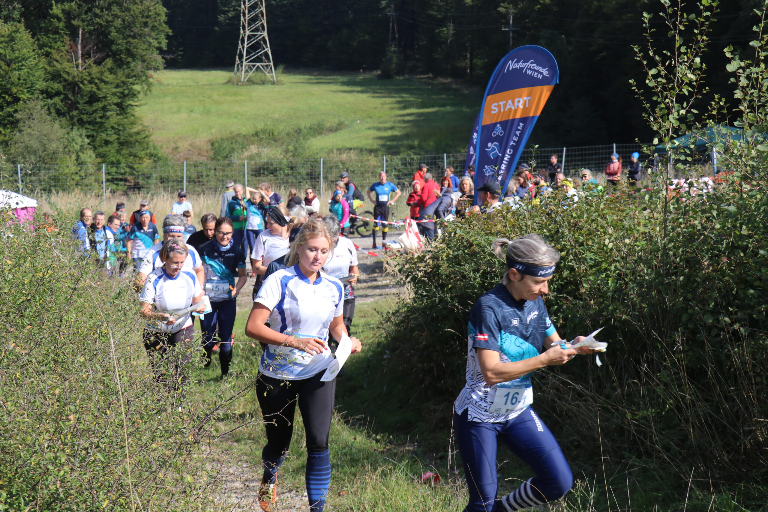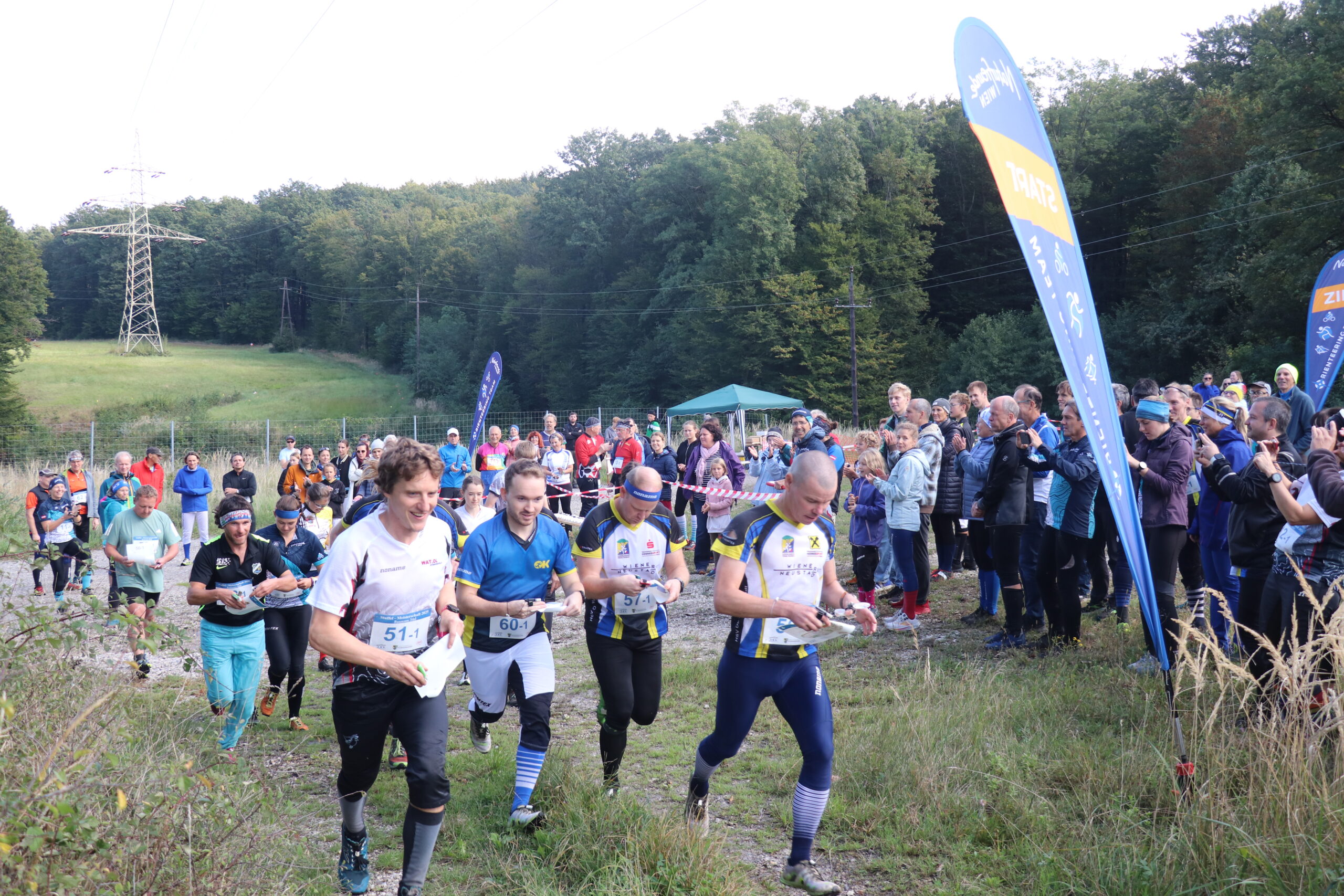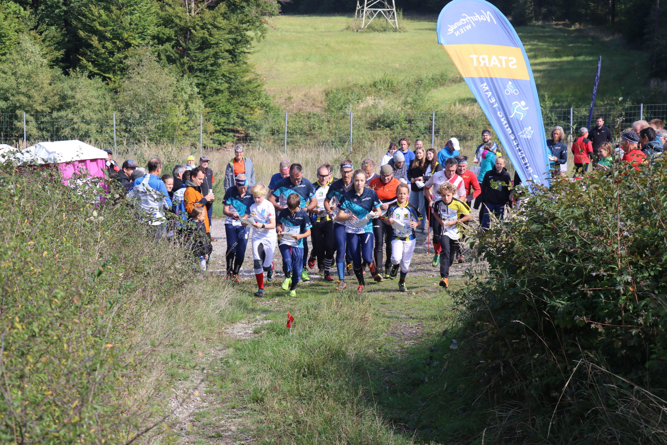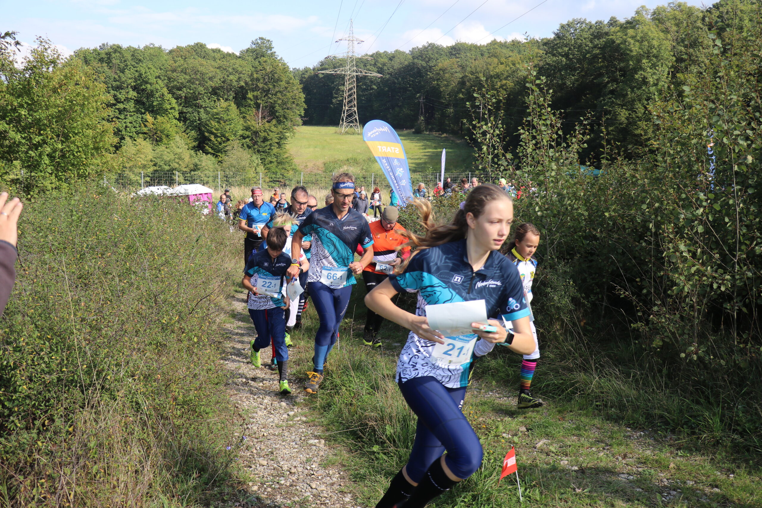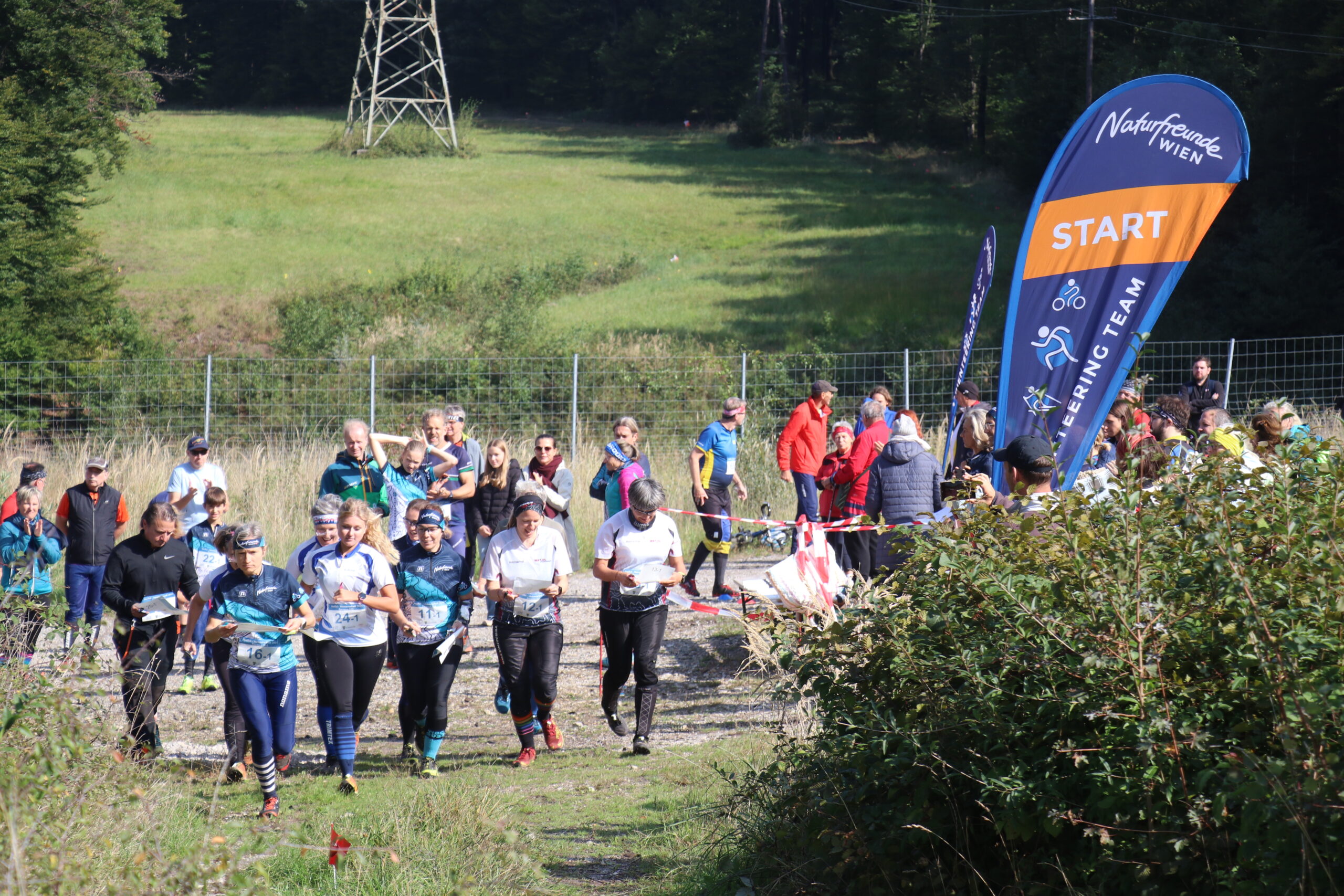 Am Samstag gestalteten dann Thomas, Livia, Ferri, Katja, Willi, Riki, Tina, Erik & Boris einen Schotterparkplatz am Rande des Purkersorfer Ortsteiles Baunzen in eine kleine, aber feine Arena für die Staffel-Meisterschaften um, während Samuel & Ralf ihre Computer hochfuhren und alles für die reibungslose elektronische Umsetzung der Wettkämpfe vorbereiteten. Alle arbeiteten fleißig und zügig, alle standen unter Strom. Das lag aber vielleicht auch an der – direkt über unseren Wettkampfzentrumbaustelle verlaufenden – 380 kV-Leitung.