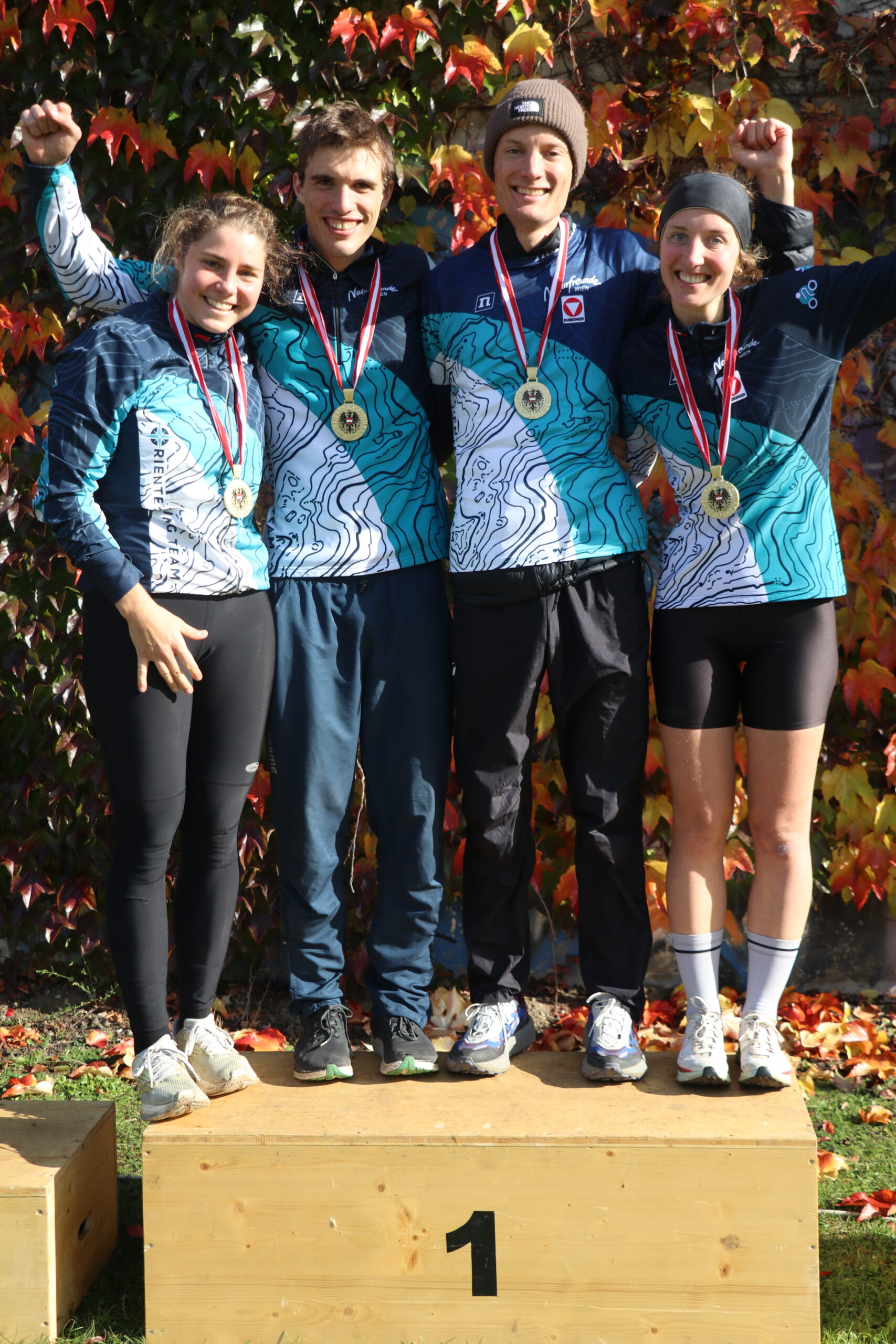 Kaum war am 18. Oktober 2025 im Regierungsviertel von Sankt Pölten der Einzel-Sprint erledigt, stellten sich die rund 400 angereisten sportlichen Abgeordneten bei den österreichischen (Staats)Meisterschaften in der Mixed-Sprint-Staffel zur (Wieder)Wahl. Stärkste Partei an diesem Nachmittag im politischen Zentrum Niederösterreichs war unser Verein. In der Staatsmeisterschaft hatten wir mit Jasmina, Erik, Nico & Ylvi (Gold) und Tina, Flo, Fabian & Anika (Bronze) auf dem Podest die absolute Mehrheit.
