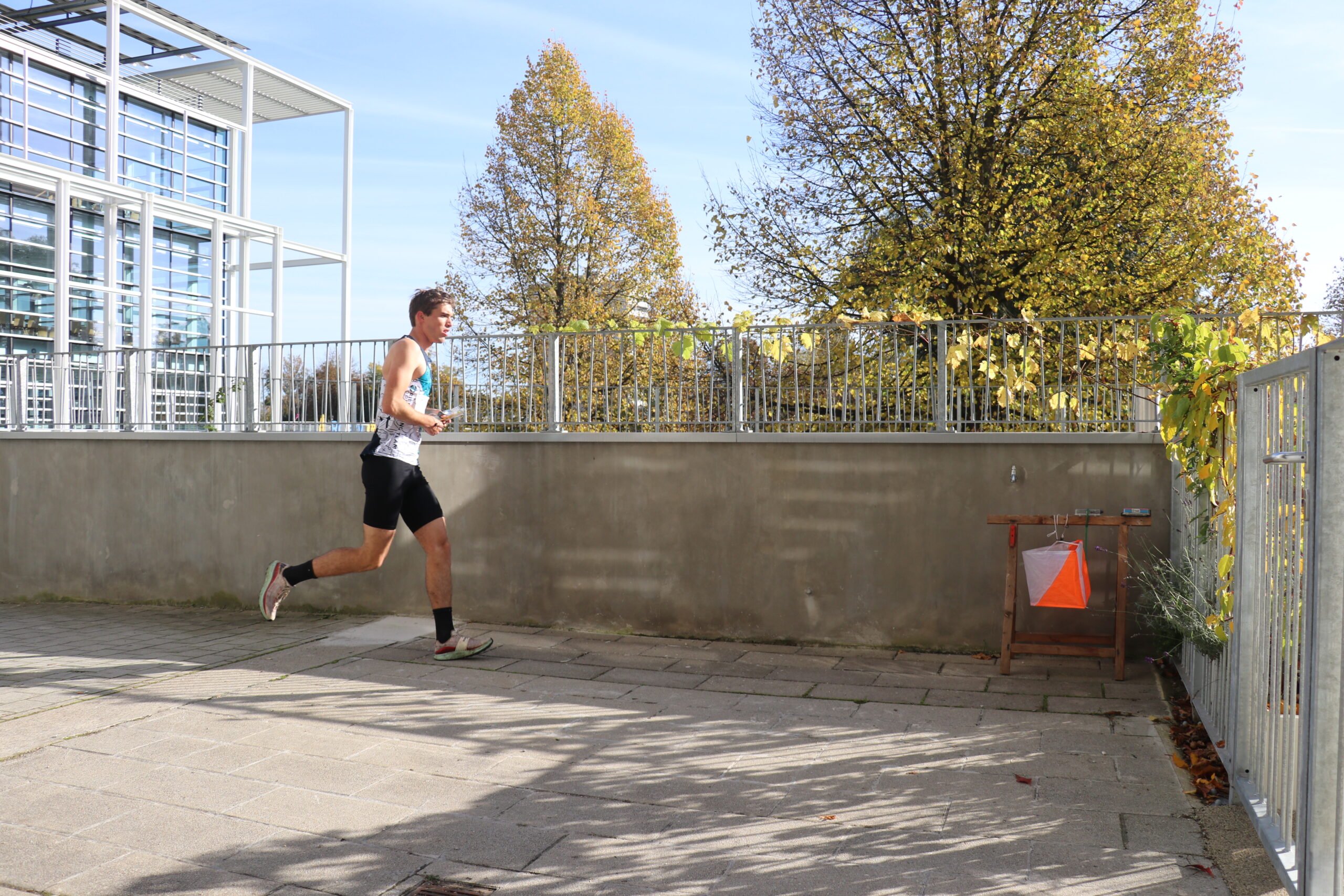 Nach etwas mehr als einer Stunde Pause folgen die Halbfinali mit den jeweils 18 Qualifizierten. Jetzt wird der Kampf um den Verbleib im Wettkampf noch härter, denn nur die Top 2 jedes Laufes buchen einen Platz im Finale. Nico und Flo sind beide im zweiten Halbfinale dran. Es ist – wie sich später herausstellt – das Schnellste und Einzige mit einer Siegerzeit von unter 7 Minuten. Unser neuer Sprint-Staatsmeister Nico läuft lange an der Spitze und auch mit dem Gefühl „alles unter Kontrolle zu haben“, aber auf der längeren Route zurück Richtung Arena wird er auf Platz 3 verdrängt. Im Ziel fehlen 4 Sekunden auf den Aufstieg ins Finale. Flo belegt in diesem Lauf den 6. Platz. Für beide ist der Wettkampf-Tag somit beendet.