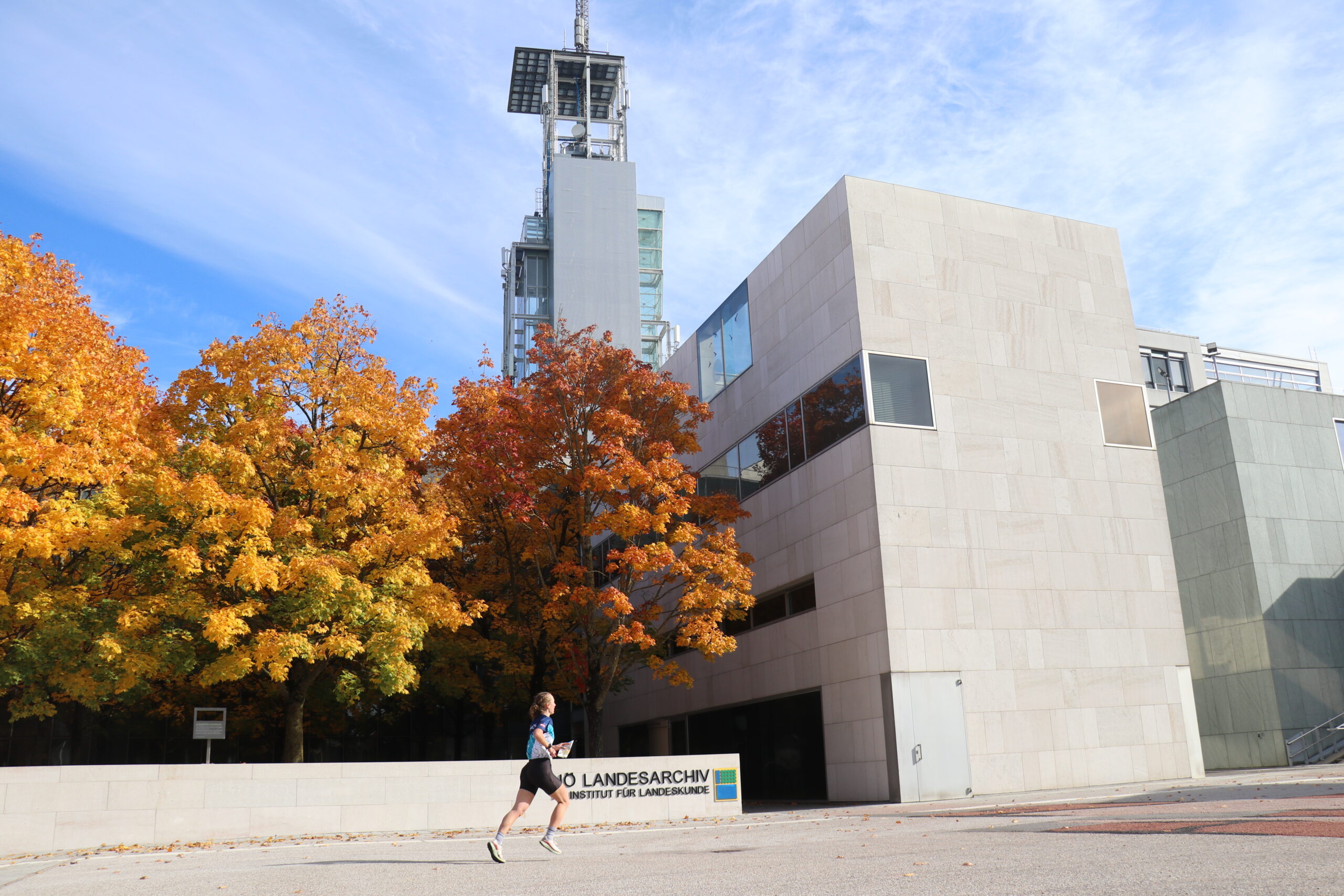 Der HSV OL Wiener Neustadt hat – begleitet und unterstützt von Thomas, der als TD eifrig werkt und wirkt – für diesen K.O.-Sprint keine Posten und Mühen gescheut. Um 10 Uhr geht es mit den Viertelfinal-Läufen los. Der wolkenlose Himmel täuscht Sommerstimmung vor, obwohl die Sonne die Luft erst auf 5 Grad erwärmt hat. Zwischen dem Festspielhaus und dem Haus der Geschichte geht’s los.
