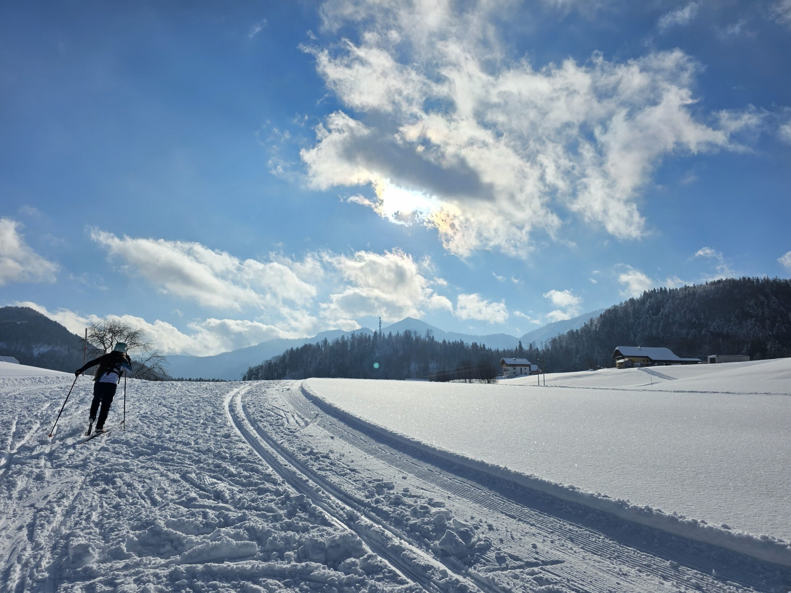 In der Nacht auf Sonntag wurde Faistenau und Umgebung erfolgreich zum Winterwunderland umgebaut.  Neuschnee, strahlender Sonnenschein und klirrende Kälte schufen eine beeindruckende weiß-blaue Kulisse. Das Langlaufen wurde deswegen aber nicht einfacher. Im Gegenteil. Zugeschneite Abschnitte und sich rasch verändernde Loipen verlangten höchste Konzentration und Kraft bis zum letzten Meter. Marina berichtet: „Minus 9 Grad, Sonne, fast kein Wind. Nur die Spuren sind megamühsam. Auch das Mitteldistanz-Renne hat alle Kräfte abverlangt“. Spätestens bei der Siegerehrung waren die Mühen des Tages vergessen. Josef Z. [H65-] und Sabine [Offen kurz] konnten ihre Klassen gewinnen. Zu beklatschen waren auch die 2. Plätze von Lucia [D-12], Vicky [Familie], Wolfgang [H55-] und Herwig [H75-]. Das Podest mit der Aufschrift „3. Platz“ war für Marina [D35-], Thomas [H45-], und Sandra [D45] reserviert.