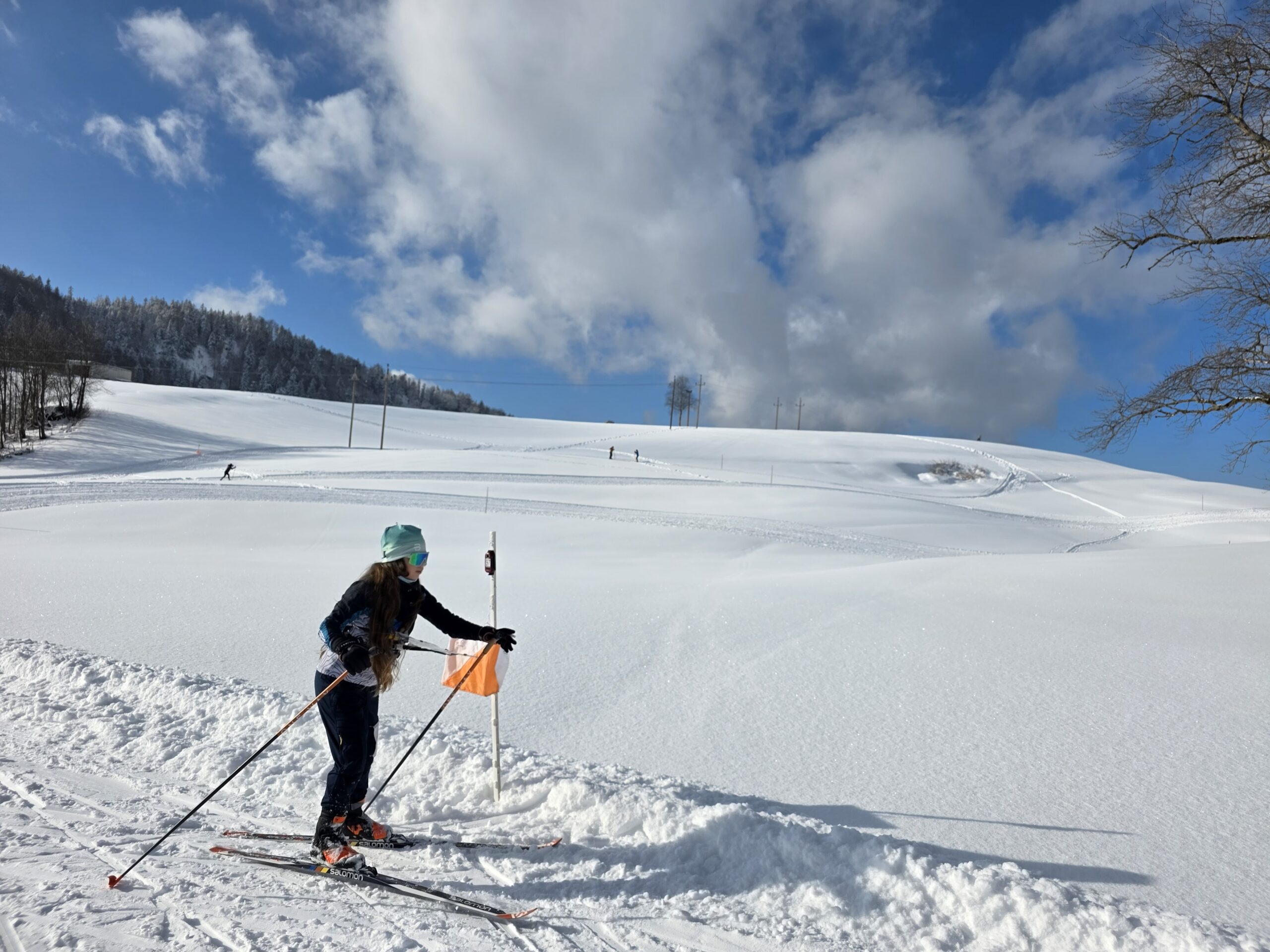 Zeit zum „Eingewöhnen“ gab es keine. Am ersten Tag waren gleich die österreichischen Meisterschaften und Staatsmeisterschaften über die Langdistanz zu absolvieren. Der Name war Programm. Die einen sprachen von „langen Distanzen und fordernden Streckenführungen“, die anderen wie Marina von „WIRKLICH lang. Zu lang“.  Sie hatte das Gefühl, dass die Streckenangaben mit dem anderen Maßstab gemacht wurden: „Ich bin 15km gelaufen, statt der angegebenen 10km„. Der starke Wind und die abwesende Sonne sorgten dafür, dass sich „nur“ minus 1 Grad sehr kalt angefühlt haben. Bei den Staatsmeisterschaften skatete Florian auf den 5. Platz. Die österreichischen Meisterschaften endeten mit 5 Medaillen für unseren Verein. Gold gewann Josef [H65-], Silber eroberte Wolfgang [H55-] und Bronze gab es für Marina [D35-], Sandra [D45-] und Herwig [H75-]. Dazu lief Vicky [Familie] auf den 1. Platz. Spätestens nach dem abendlichen Sauna-Gang zog es so manchen und manche wieder in den frischen Schnee.